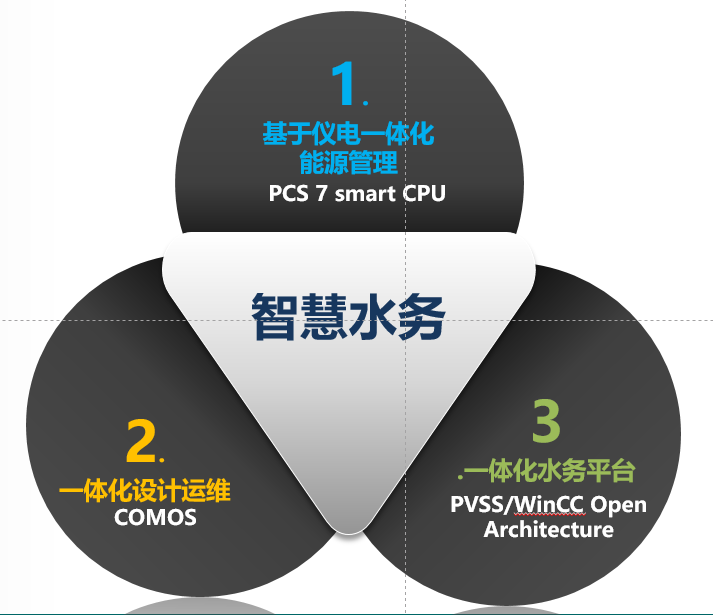 基于西门子产品构建的“智慧水务”整体解决方案,以水厂为整体,将稳定、可靠、节能的工艺先进过程控制、运营智能管理及成本智能决策管理贯穿整个生命周期。